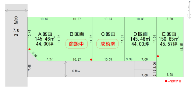 備考:敷地内電柱有(A・B・E区画)