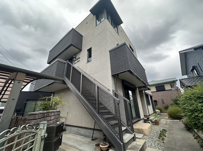 こちらの物件は、スタイリッシュな外観デザインが目を引く3階建て住宅です。
