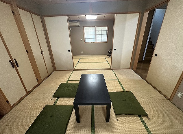 1階には、8帖と6帖の二間続きの和室が配置され、襖を開ければ18帖の大広間として利用可能。