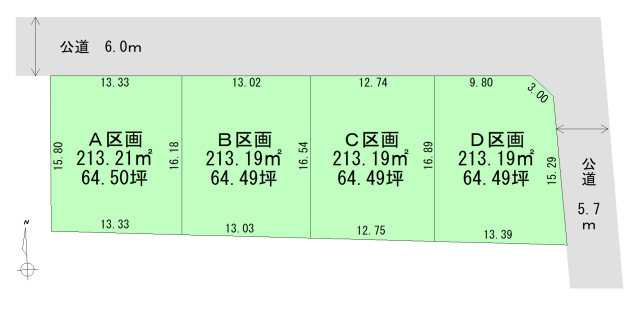 土地面積:213.19㎡(約64.49坪)~213.21㎡(約64.50坪)