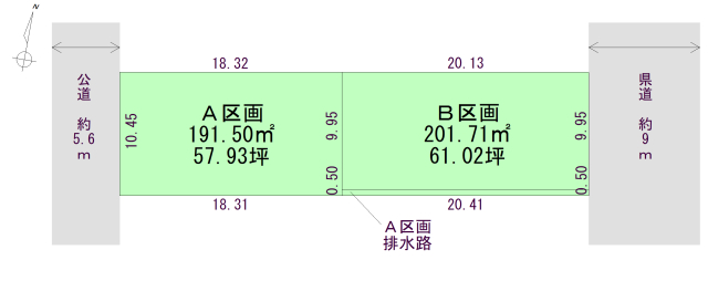幅員:A区画・西側5.6m B区画・東側9.0m