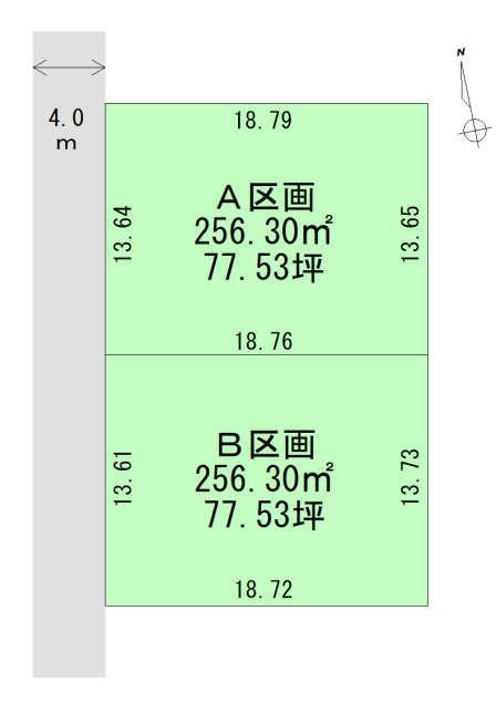 接道:A、B区画・西側13.6m